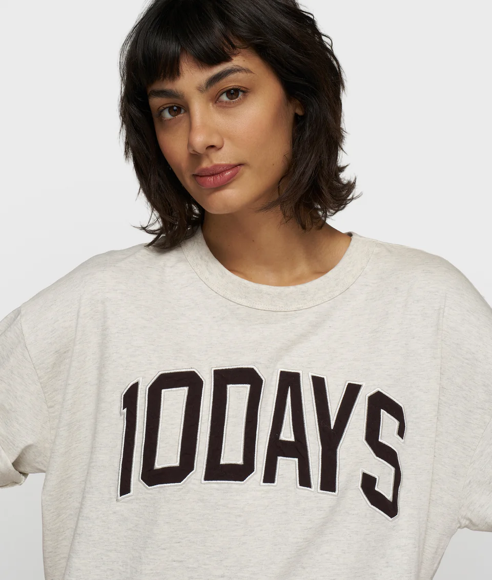 Relaxed fit T-shirt, gemaakt van zacht GOTS-gecertificeerd biologisch katoen. Voorzien van een ribgebreide ronde hals, dubbele laag met raw edge bij de mouwen en zoom een een ’10DAYS’ large poplin logo op de borst.