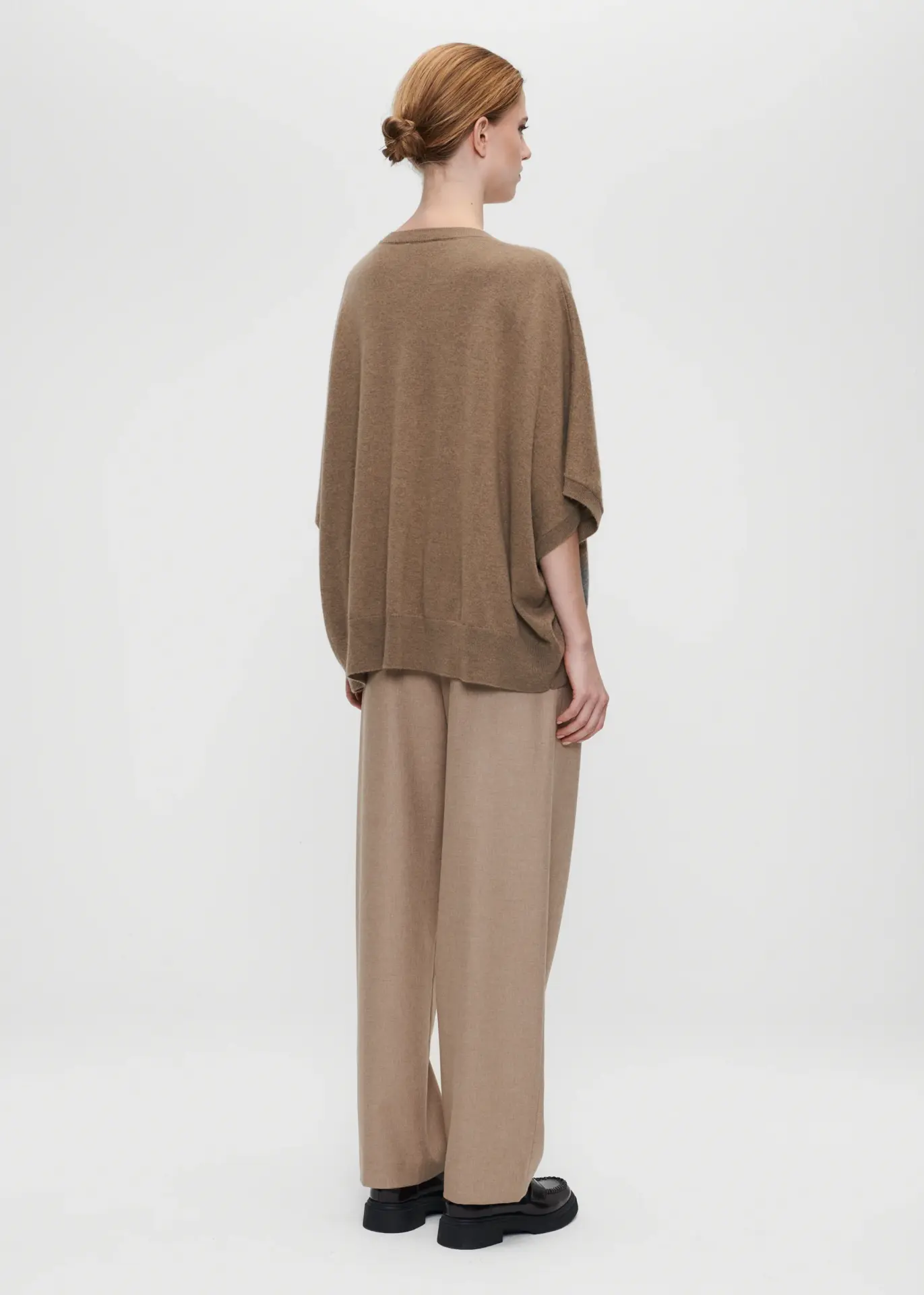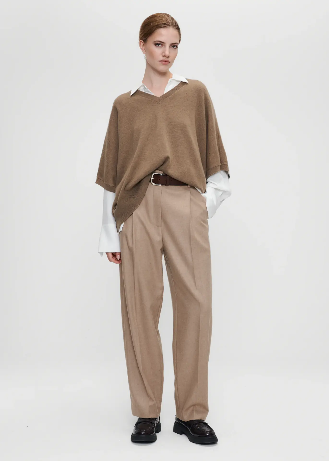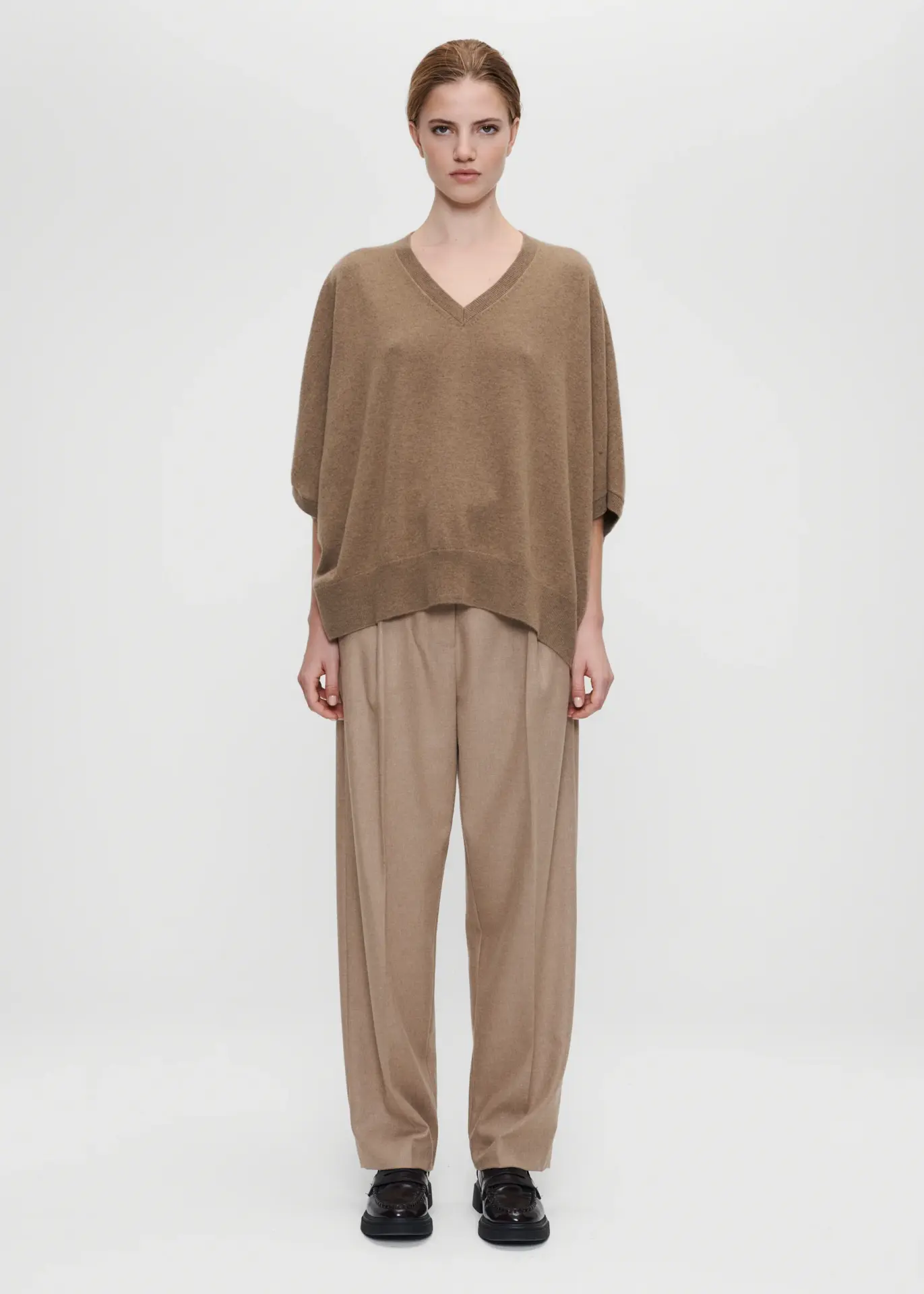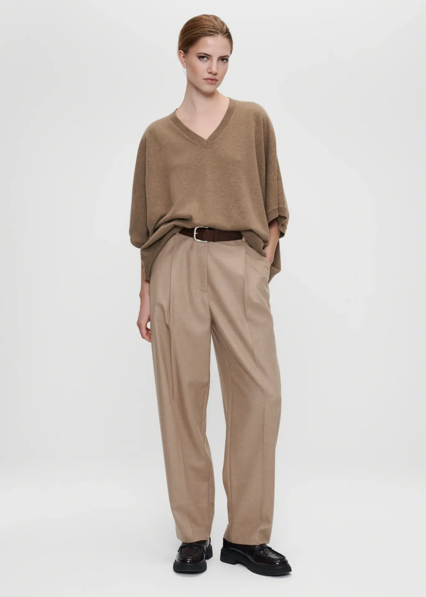 Een gebreid model met unieke maatvoering van een mix van kasjmier, met flatterende V-hals en boxy fit silhouet.