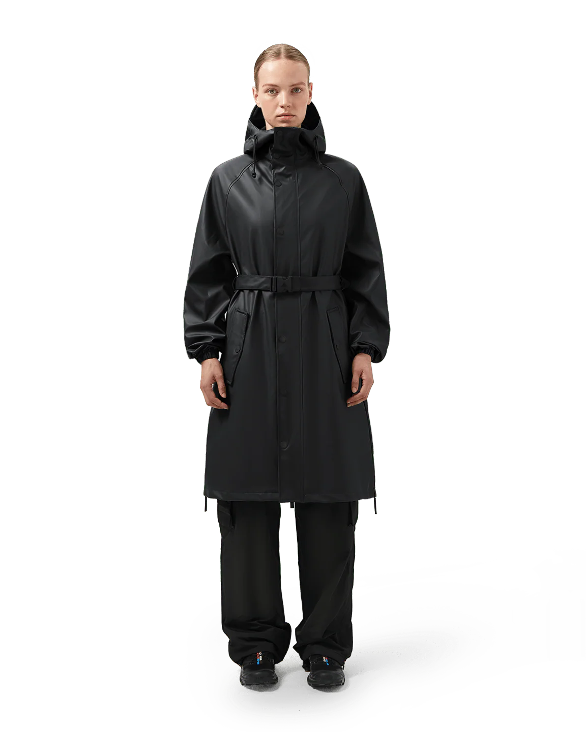 Tweezijdige waterafstotende ritssluiting aan voorzijde voorzien van overslag met drukknopen