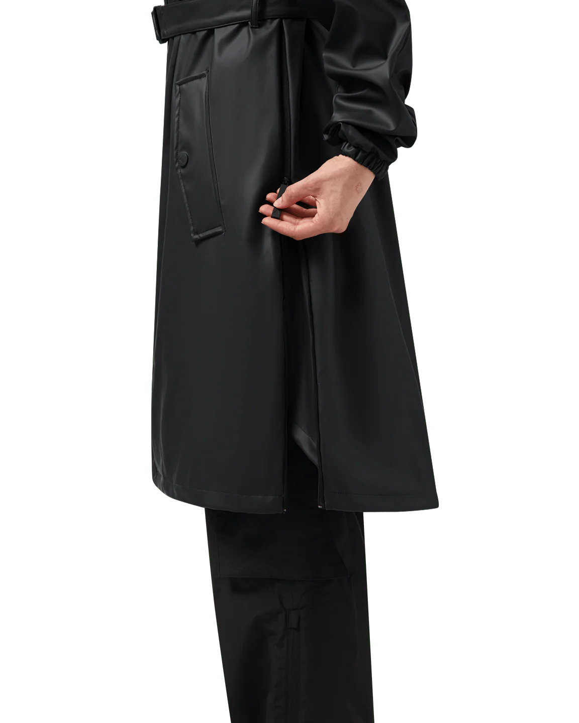 Kenmerkende ritsen aan de zijkant voor poncho-functie