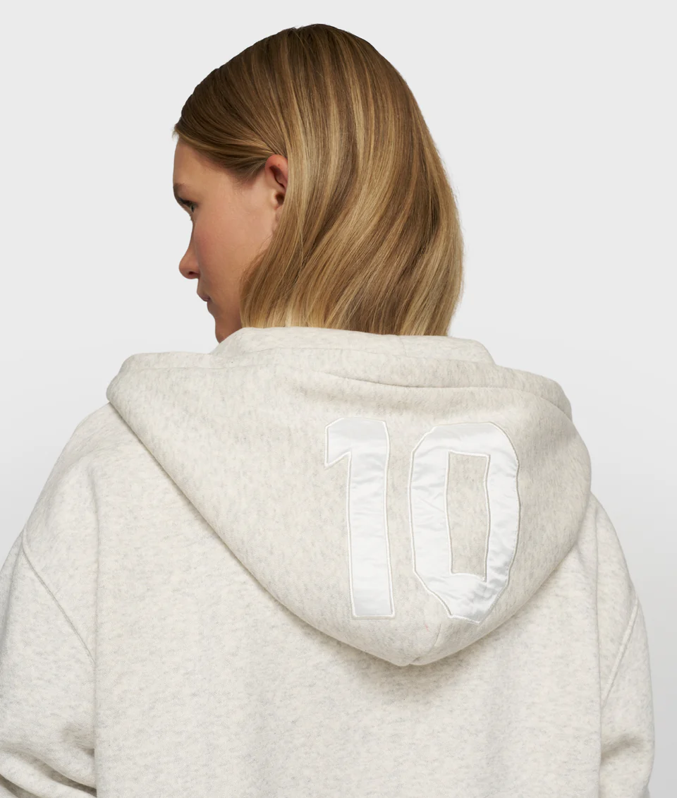 Oversized fit statement hoodie met rits, gemaakt van brushed katoenen fleece. Voorzien van een capuchon met een ’10’ patch, ribgebreide manchetten, een lage schouderinzet en een ritssluiting