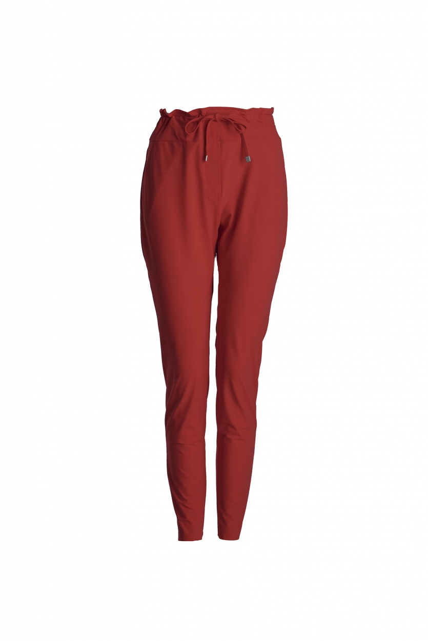 De Yogi pants van Japan TKY is gemaakt van hun bekende Travel Wear. De broek heeft een middelhoge tailleband met koordje, een faux gulpsluiting, steekzakken aan voorkant en faux paspelzakken aan achterkant. Het heeft een relaxte fit met tapstoelopende pijpen meet zijsplitje